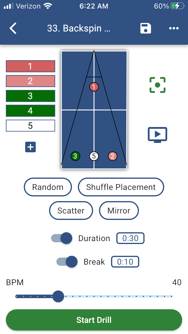 The Power Pong app provides you with a "drag-and-drop" interface for creating your own drills and training exercises.